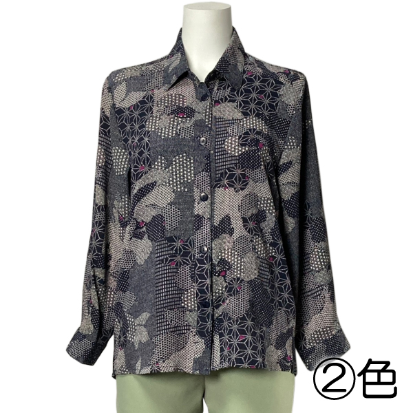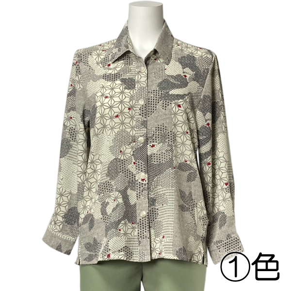 落ち着いた雰囲気の中にも、華やかさのある和柄プリントで春の装いにピッタリです。