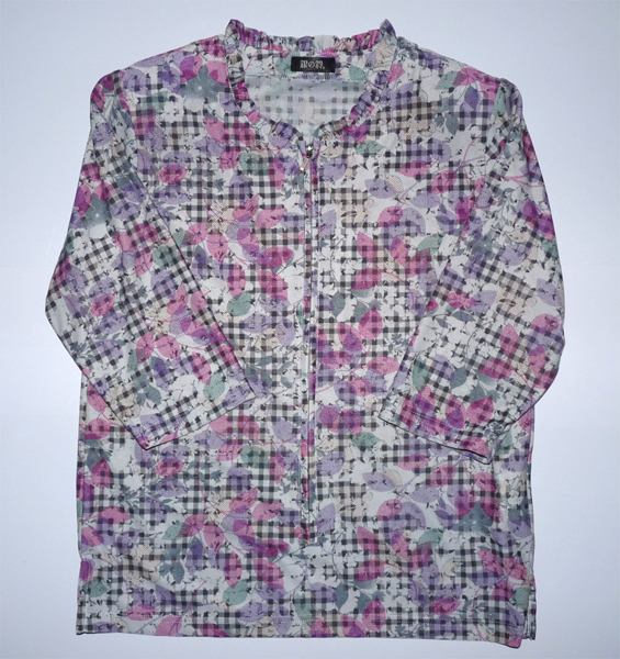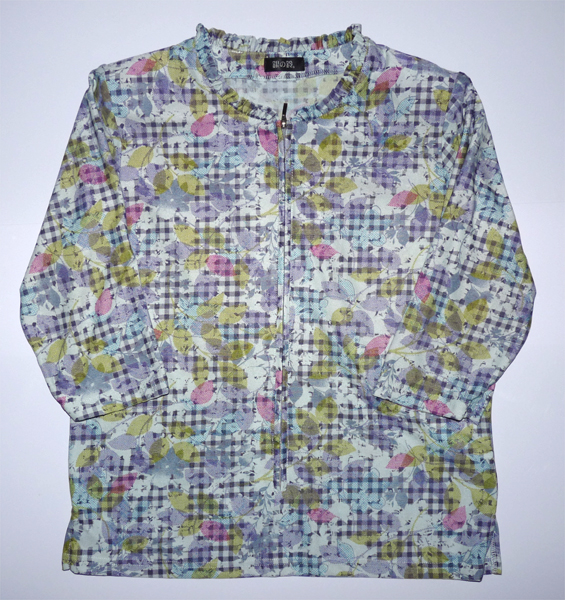 ロングファスナーを使用した、七分袖のTシャツです。大きく開くロングファスナー仕様で、脱ぎ着のしやすい、着る人と着せる人どちらにも優しいTシャツです。