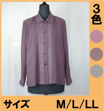ボタンホールを斜めにして脱着を楽にしたブラウスです。シンプルな形に派手すぎないレース使いで上品で着まわしのきく一枚です。